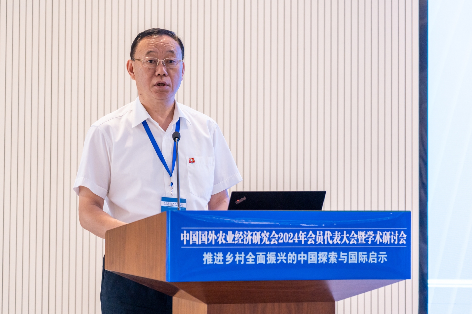 中国国外农业经济研究会秘书长胡冰川作第八届理事会工作报告(学通社记者 韩鑫垚 摄)