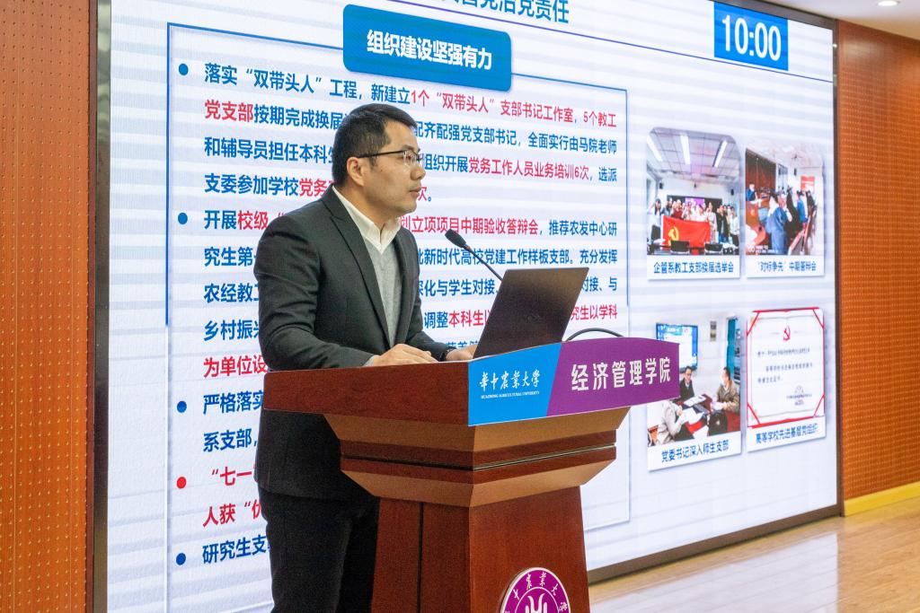 经理李谷成代表学院领导班子,以“持续推进‘五个一流’,全面开启‘十四五’发展新征程”为题,围绕党建与思政工作、本科人才培养、学位与研究生教育、科研与社会服务、国际合作与交流、人事人才、离退休与群团工作、改革创新与奋进之笔等八个方面总结了2021年度学院工作。