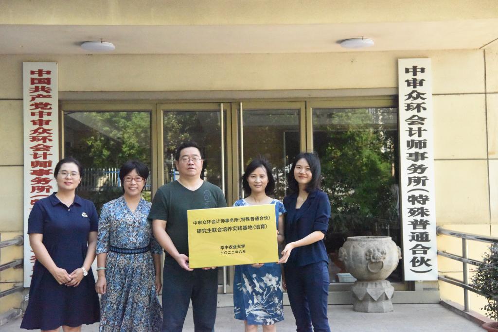 为深入推进校企合作,推动人才培养主动适应经济社会发展需要,2022年8月9日上午,澳门十大老牌信誉平台排行榜-中审众环(特殊普通合伙制)会计师事务所研究生联合培养实践基地正式挂牌。中审众环合伙人陈永红、罗明国、人力资源部负责人官媛媛,澳门十大老牌信誉平台排行榜副经理项朝阳、研究生办公室主任乔学琴以及会计系教师王淅勤出席仪式。