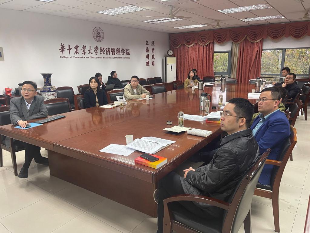 李谷成围绕“加快构建新发展格局,着力推动高质量发展”主题分享了学习党的二十大精神心得体会。他紧密结合自身科研领域,聚焦经济建设这一党和国家的中心任务,从已经实现现代化的国家和地区有效经验中,深入阐释了“发展仍然是我们党执政兴国的第一要务”这一科学论断,重点解读了“新发展理念”的丰富内涵和战略意义。他谈到,推动高质量发展是适应我国社会主要矛盾变化的必然要求,是遵循经济发展规律的必然要求,关系我国社会主义现代化建设全局。实现高质量发展,我们必须跨越非常规的“三大关口”,必须把握新常态下我国经济发展的“四个主要特点”,必须完整、准确、全面贯彻新发展理念。他立足党的二十大对推动高质量发展作出的“五大战略部署”,号召与会同志要始终高举中国特色社会主义伟大旗帜,全面贯彻习近平新时代中国特色社会主义思想,弘扬伟大建党精神,自信自强、守正创新,踔厉奋发、勇毅前行,为全面建设社会主义现代化国家、全面推进中华民族伟大复兴而团结奋斗。